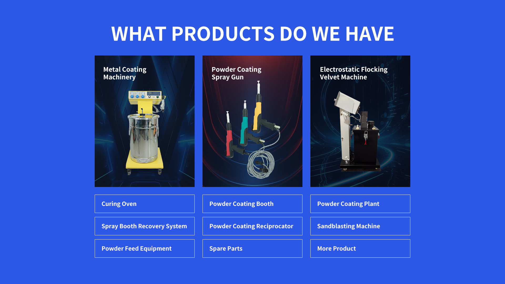 Industrial Powder Coating Spray Guns apply dry powder to metal surfaces using electrostatic or fluidized methods. Core components include the gun body, nozzle, powder hopper, electrostatic generator, and airflow controls.
